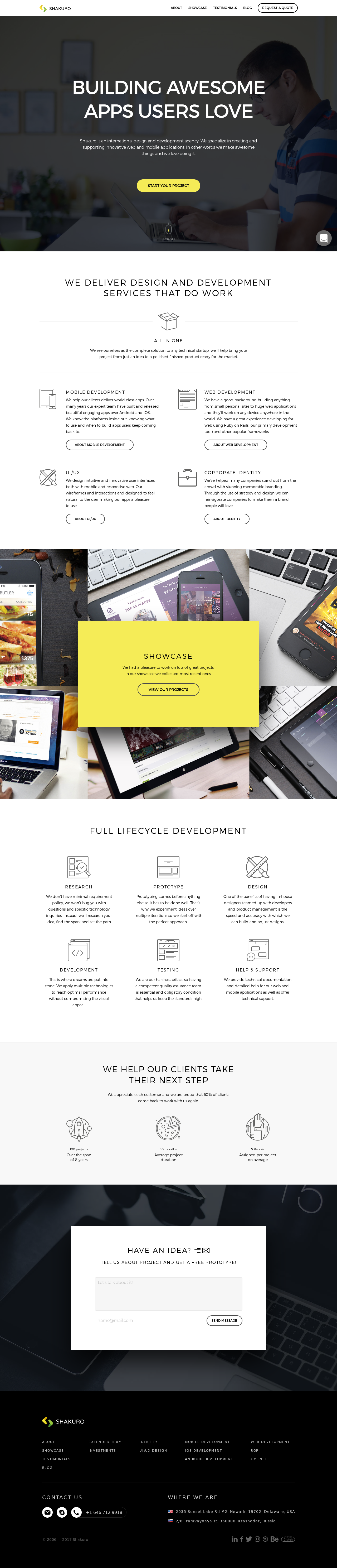 Shakuro is made up of former development freelancers, business executives and graphic designers from across the world who were trained to cater to customers, and our decade-long history with over 250 clients are our main accolades for that.