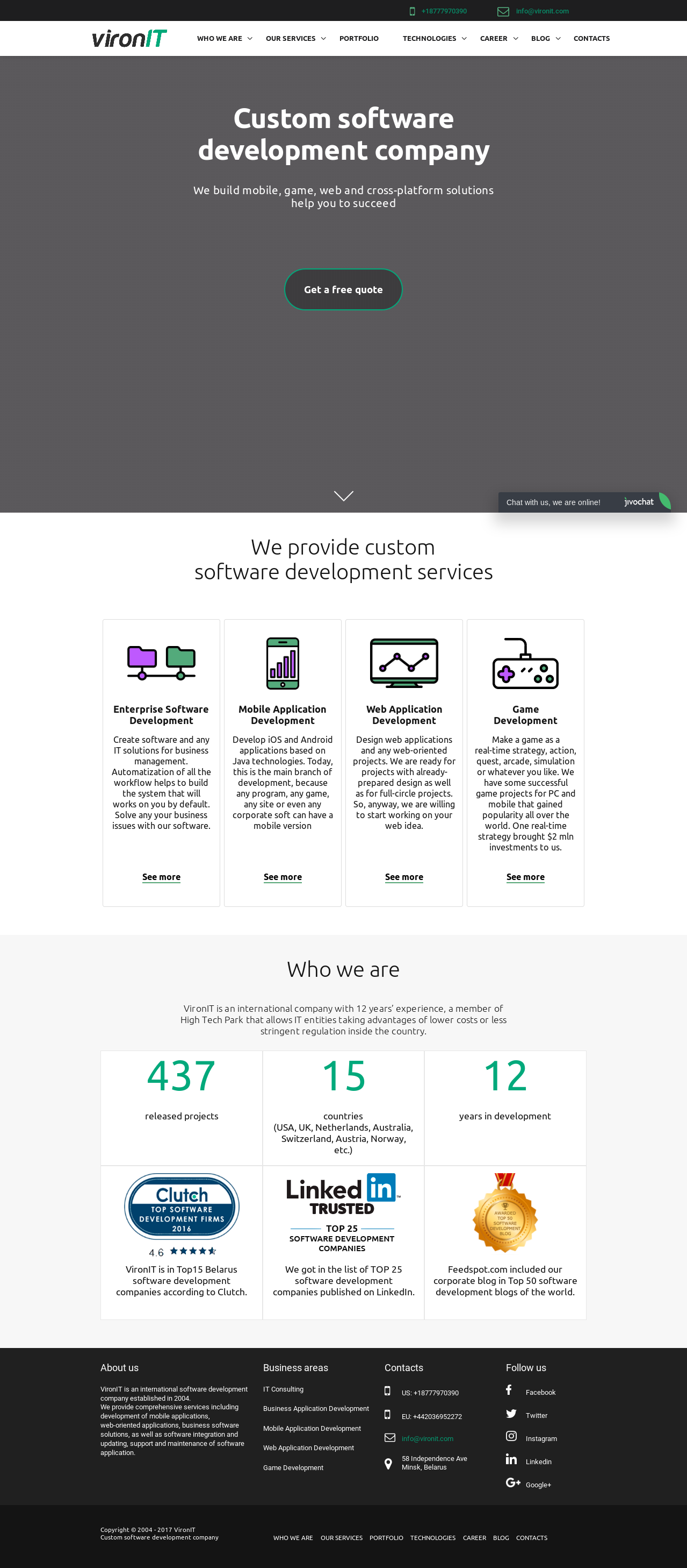 VironIT is an international IT company providing comprehensive professional services for software development (mobile applications, web-oriented software products, and business software solutions), software integration and updating, support and maintenance of developed applications.