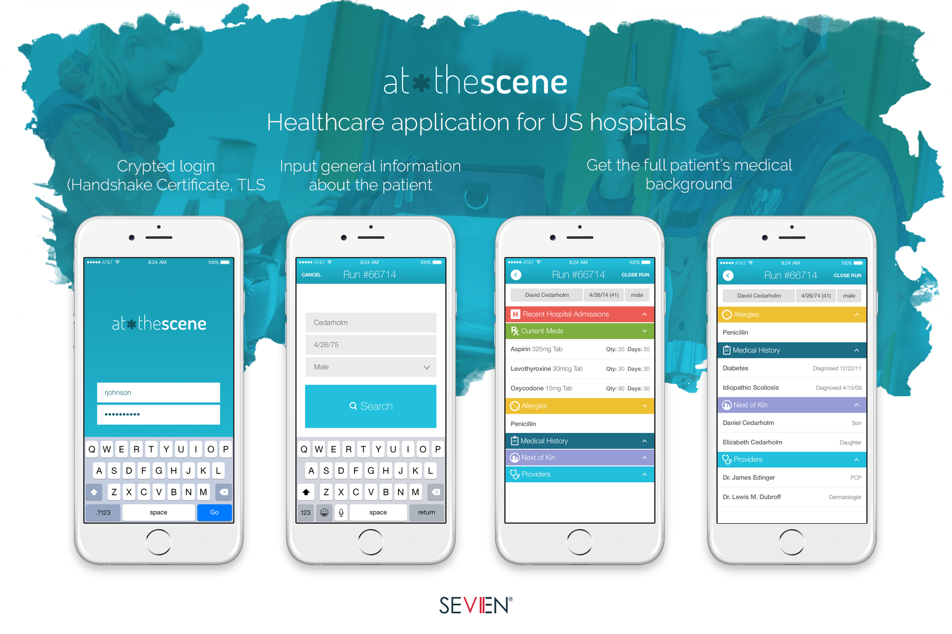 Application provides first responders and EMS personnel with access to critical patient information that resides within the Health Information Exchange. Additional functionality of e-sign on the place significantly increases patient's chance to get medical help in time.