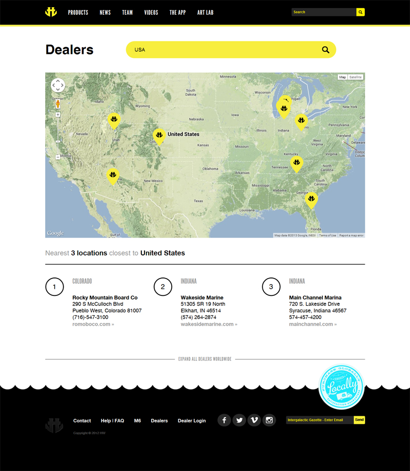 The “Dealers” page, powered by online map and search system, allows user to find closest to his geographic location stores.