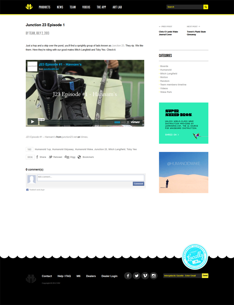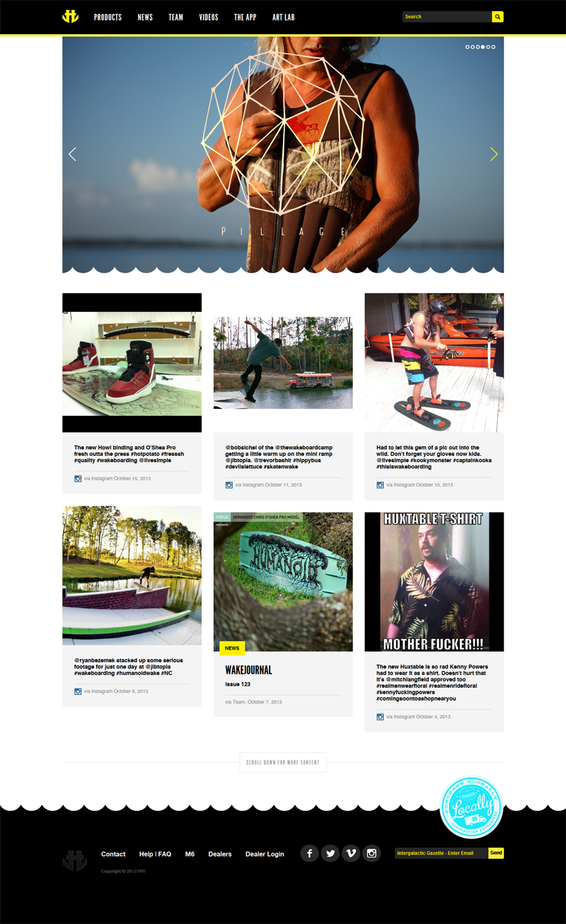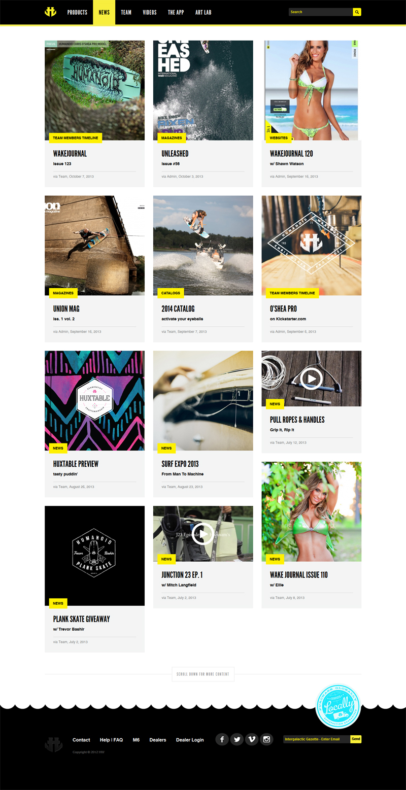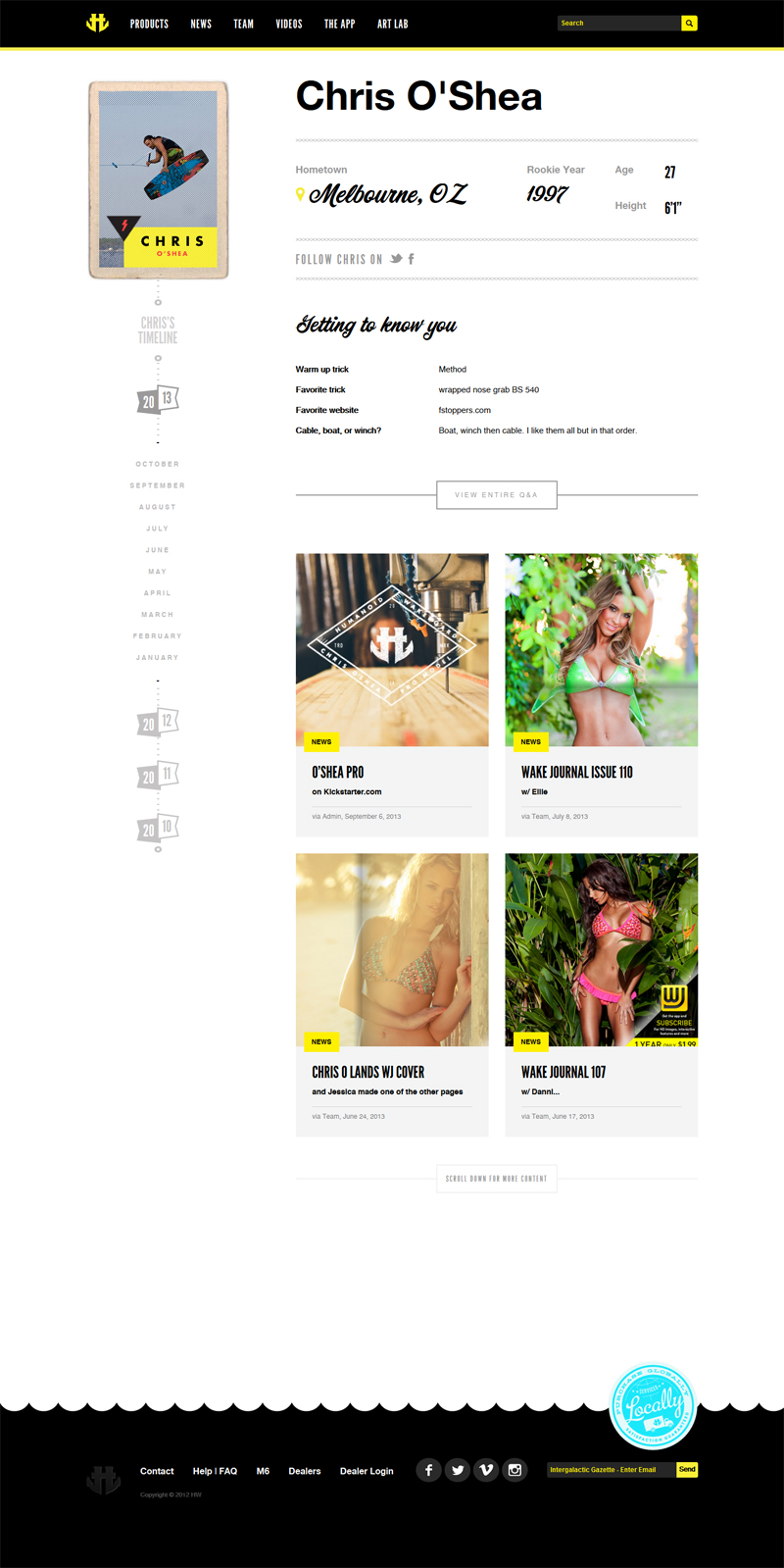 “Board-type” products (wakeboards, surfboards) have full-screen preview ability for all existing of that type. Site admin has tools to create unique set of “techpoints” for each board, that are applied to particular board image and can be described with usage of various images and texts, so site user has feature of interactive product and its performance specification details preview.