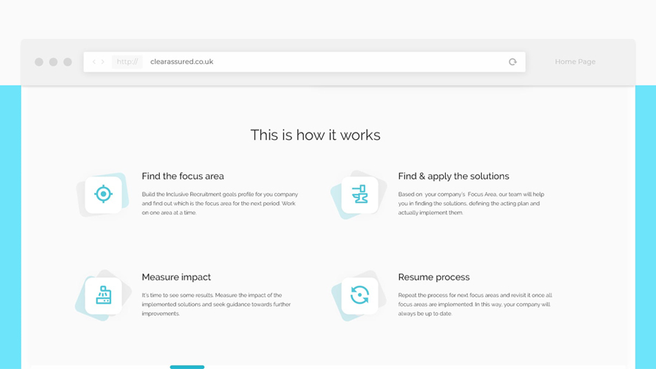 The Clear Company asked us to design and implement a platform for companies that wanted to become inclusive employers. Clear Assured is part of The Clear Company - recognised leaders in the provision of inclusive talent management services. Clear Assured helps organisations identify and remove barriers from recruitment and talent management policy, process and practice which have the potential to exclude under-represented groups including disabled, BAME and LGBTQ candidates.