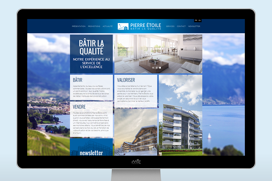 A responsive website built in cooperation with MEO Design Sarl for Pierre Etoile, a development company in Switzerland doing projects from apartments to offices or business units.
