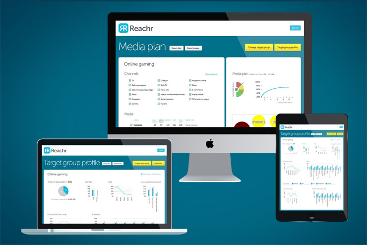 Reach is a SaaS created for Cint AB company. It used to analyze media consumption statistical data and build variety of reports. User can selects target group (age, gender, geographical split, etc.) and view processed information as interactive plots and charts.