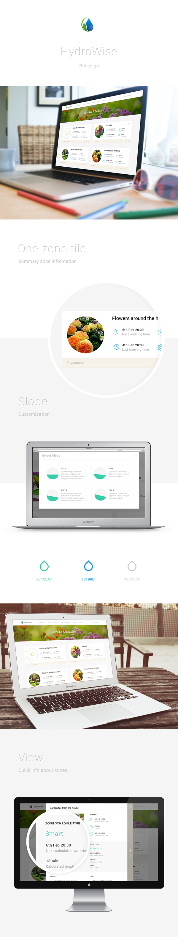 Wi-Fi enabled hardware that can be connected to iPhone or Android device and managed from mobile device Smart watering system that adjusts schedule based on actual and predicted weather conditions Weather stations Software with customizable permissions and reports Water flow monitoring and faulty detection.