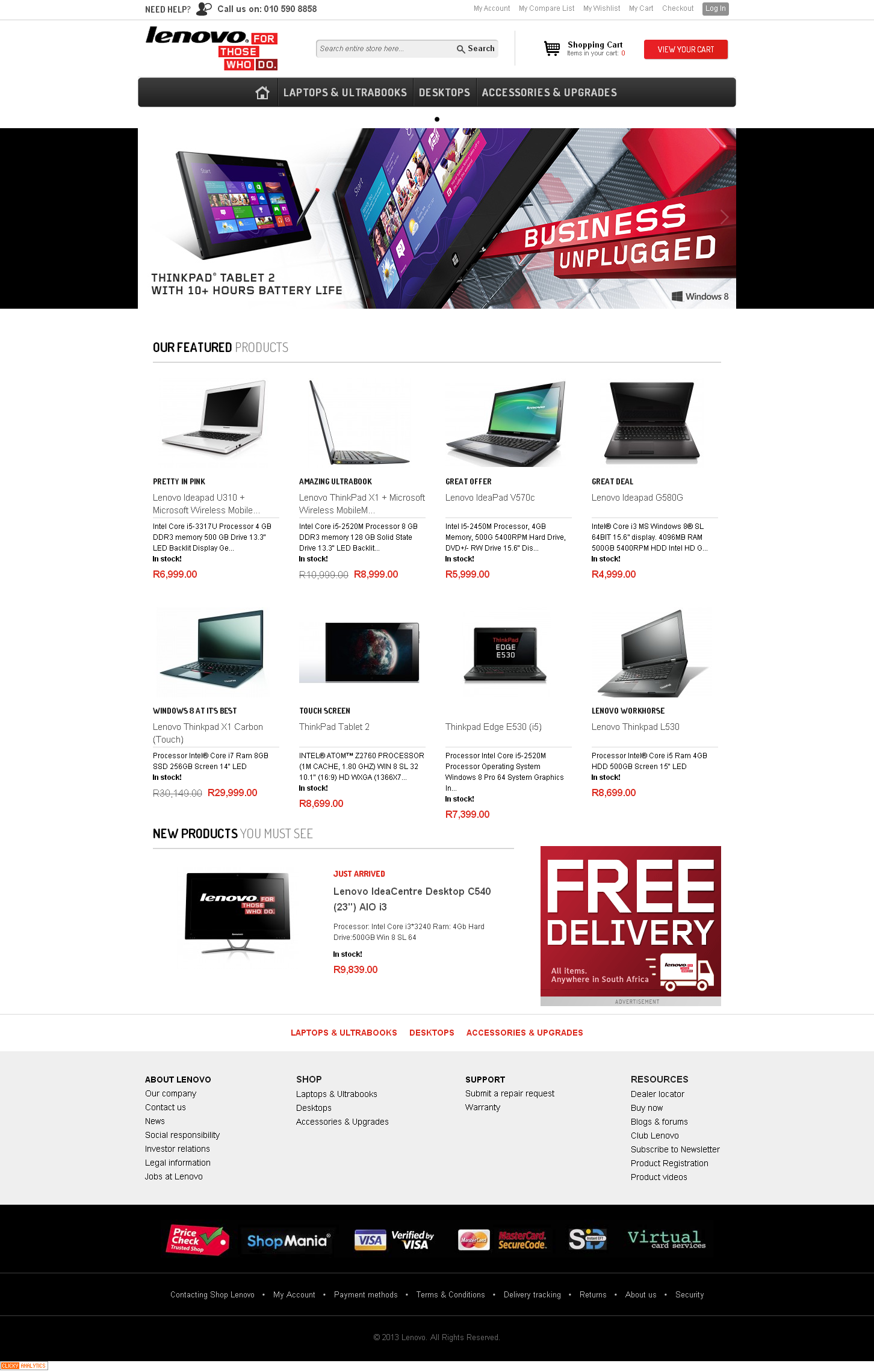 Official Lenovo store for South African market. Multi-store configuration; Integration with Sales Force CRM using custom SF API; Integration with various suppliers (SOAP, CSV files over FTP, etc.); Integration with South African carriers (SOAP); PSD to HTML and integration to Magento platform; Many other custom development.