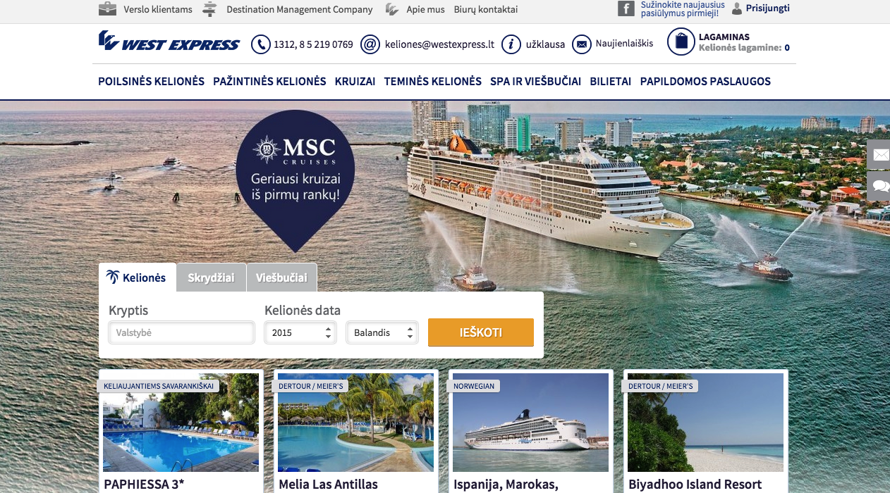 West Express - the leading travel agency not only in Lithuania, but also in the Baltic countries. West Express is organizing various types of business and leisure trips. It‘s one of the oldest and biggest travel agency in our country which has huge experience in customer service. Reached results: increased avg. time on site increased page views decreased bounce rate