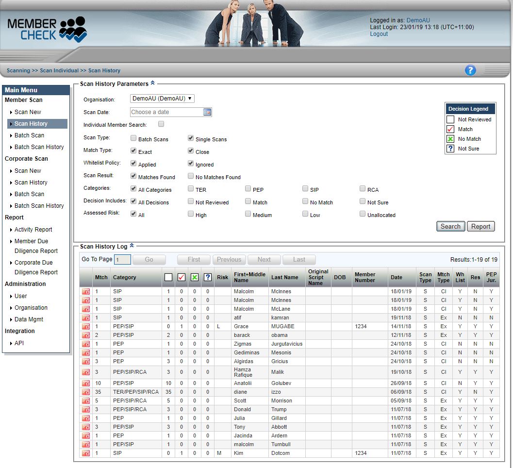 MemberCheck is an online AML compliance service, which provides scanning services against our partner’s, Thomson Reuters World-Check, lists of Politically Exposed Persons (PEPs), sanctioned individuals and organisations, persons of special interest and special interest entities. The service, which has been in existence for 10 years, is designed for reporting entities that required a cost effective AML screening service. The service is very straight forward and offers full due diligence work flow, white list creation, reporting and audit capabilities. The service also comes with API that can be used to integrate with your customer on-boarding system, to receive instant results.